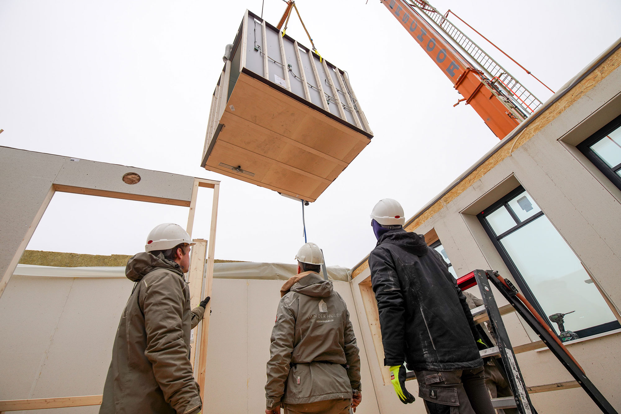 Voor verzending heeft ieder element het benodigde kwaliteitslabel waaronder constructieve goedkeuring. Er zijn tussentijds geen controles nodig vanuit de klant op gebied van maatvoering, constructieve sterkte en afwerking. Klaar voor montage op de bouwplaats. Onze innovatieve en gedigitaliseerde aanpak maakt het mogelijk om een enkele woning, een straatje erbij of een volledige woonwijk te realiseren.